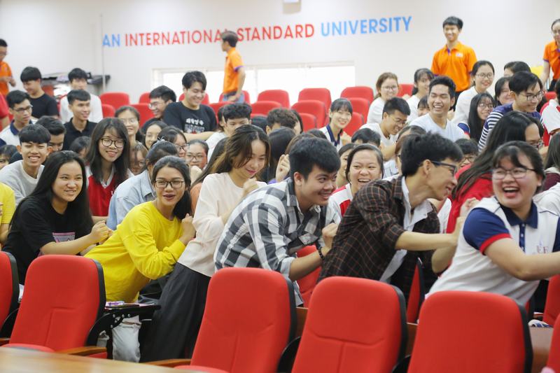Đồng thời, với các trò chơi vận động sôi nổi, chương trình đã tạo nên sự gắn kết giữa các bạn sinh viên, làm nóng thêm bầu không khí tại Hội trường.