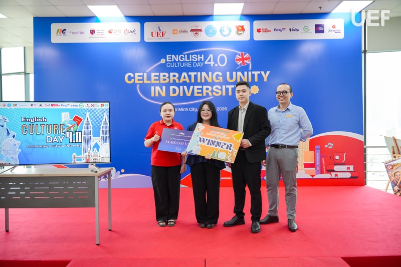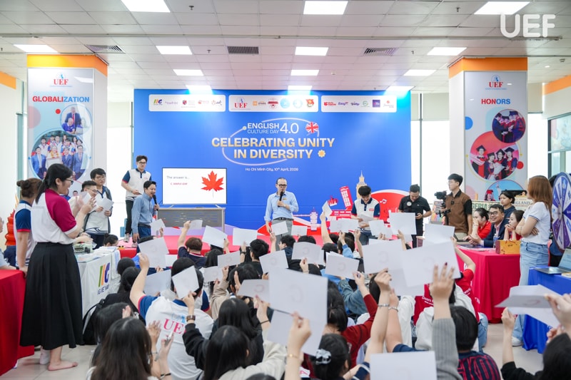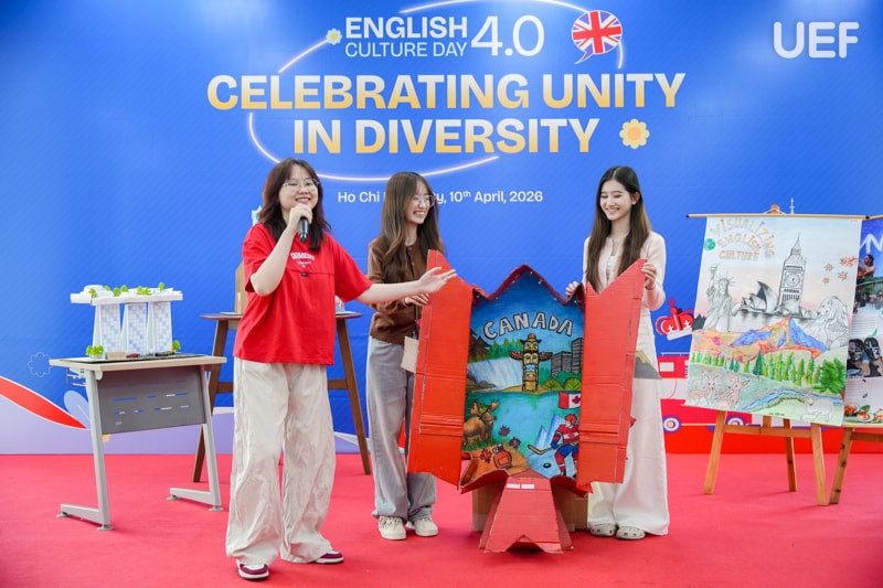 Trong bối cảnh hội nhập ngày càng sâu rộng, ngoại ngữ không còn dừng lại ở vai trò là công cụ giao tiếp mà đã trở thành chiếc chìa khóa để người trẻ mở rộng tri thức, khám phá thế giới và khẳng định bản thân. Với định hướng tạo dựng môi trường học tập giàu trải nghiệm để sinh viên tiếp cận tiếng Anh một cách sinh động và gần gũi, Khoa Tiếng Anh UEF đã tổ chức chương trình English Culture Day 4.0 với chủ đề “Celebrating Unity in Diversity” vào sáng ngày 10/4. Đây là sự kiện thường niên mang đến một ngày hội kết hợp hài hòa giữa học thuật, sáng tạo và giao lưu văn hóa.