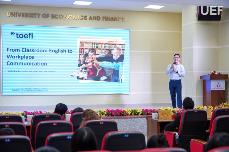 Từ đó, ông nhấn mạnh tiếng Anh không chỉ là một kỹ năng ngôn ngữ mà còn là công cụ để trình bày ý tưởng, hợp tác và thể hiện năng lực chuyên môn trong môi trường đa quốc gia. Bổ sung cho góc nhìn này, đại diện ETS cũng chỉ ra rằng khả năng thích nghi và những minh chứng cụ thể về năng lực sẽ là yếu tố giúp sinh viên tự tin bước vào thị trường lao động toàn cầu.