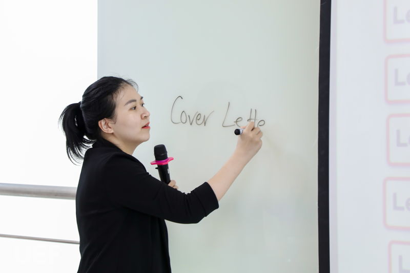 Không chỉ học lý thuyết, lớp ngoại khóa còn được cô Ngọc Thanh cho tăng cường thực hành viết ngay sau khi bài giảng của cô kết thúc. Vận dụng ngay những gì đã học được, các bạn sinh viên bắt tay vào viết nhanh chóng một lá thư xin việc. Sau khi viết xong, cô đã sửa bài trực tiếp cho từng bạn một cách chi tiết. Nhờ vậy, UEFers rút được kinh nghiệm, thuộc cấu trúc email và học thêm một số từ vựng mới.