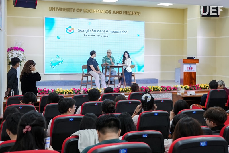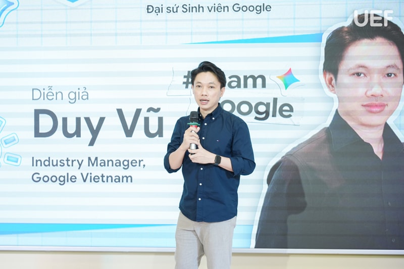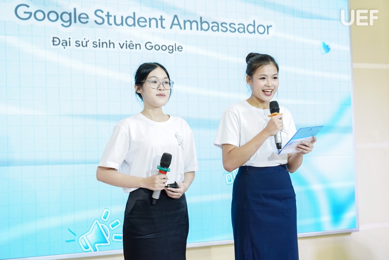 Đại diện UEF tham dự chương trình có ThS. Trần Ngọc Diễm Minh – Phó Trưởng Phòng Công tác sinh viên. Đại diện phía Google Vietnam có sự hiện diện của chị Hana Trần – Founder RSVP Vietnam, đồng thời là Giám đốc điều phối Dự án Google Student Ambassador (GSA), anh Duy Vũ – Industry Manager cùng các mentor của dự án GSA.