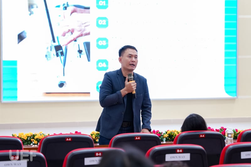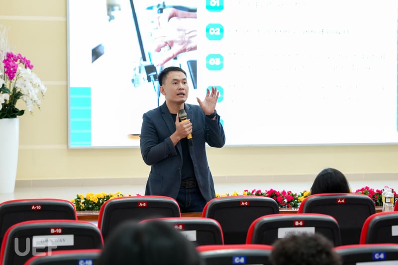 Mở đầu buổi báo cáo, diễn giả đã giúp các bạn sinh viên UEF làm rõ các câu hỏi như: Tổng quan về chuyển đổi số? Chân dung nhà lãnh đạo 4.0? Mô hình tư duy và phương pháp luận hiệu quả dành cho lãnh đạo 4.0? Một số case study chuyển đổi số thành công và các kinh nghiệm triển khai?...