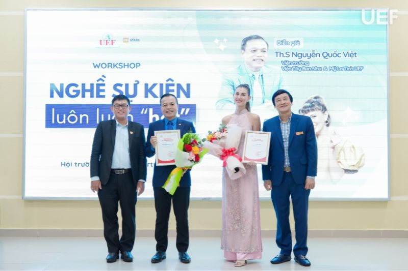 Nhằm mang đến cho sinh viên góc nhìn thực tế, đa chiều về ngành nghề giàu tiềm năng này, sáng ngày 24/3, Viện Tây Ban Nha và Mỹ Latinh đã tổ chức workshop “Nghề sự kiện luôn luôn hot”. Đồng hành với UEFers trong chương trình là hai diễn giả giàu kinh nghiệm: ThS. Nguyễn Quốc Việt - Viện trưởng Viện Tây Ban Nha và Mỹ Latinh, đồng thời là CEO & Founder ECASA và Ms. Micka Chu - MC, người mẫu, diễn viên và biên kịch nước ngoài đang hoạt động tại Việt Nam.