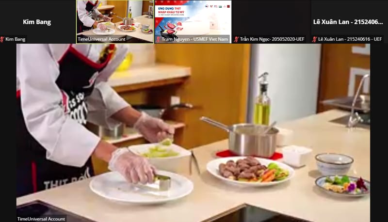 Mặc dù vẫn đang trong giai đoạn dịch bệnh, chỉ tương tác trực tuyến, song chuỗi hoạt động “Ứng dụng thịt nhập khẩu từ Mỹ” đã thu hút sự tham gia tích cực của các bạn sinh viên. Qua đó cũng thấy được sự quan tâm của khoa, trường dành cho những ngành học đòi hỏi tính thực tiễn cao. Hai chuyên đề cuối cùng của chuỗi hoạt động sẽ diễn ra vào ngày 11, 12/12 tới đây. UEFers hãy tiếp tục tham gia để cập nhật thêm nhiều kiến thức ẩm thực bổ ích, mới mẻ.