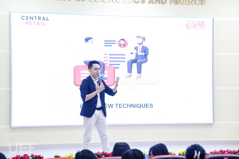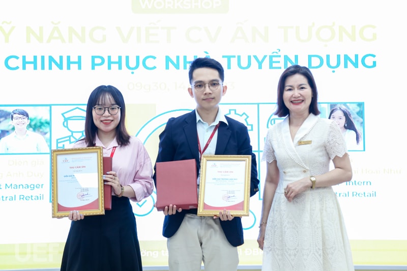 Sáng 14/11, Trung tâm Hợp tác doanh nghiệp UEF đã tổ chức thành công buổi workshop hữu ích với chủ đề "Kỹ năng viết CV ấn tượng và chinh phục nhà tuyển dụng" dành cho UEFers, đặc biệt là sinh viên năm 3, năm 4. Chương trình có sự đồng hành, chia sẻ của anh Trương Anh Duy - HRBP Assistant Manager Central Retail và chị Phạm Thị Hoài Như - HRBP Intern Central Retail (cựu sinh viên khóa 2020 UEF).