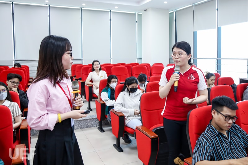 Cuối workshop, sinh viên đã đặt nhiều câu hỏi và chia sẻ nguyện vọng của mình cùng diễn giả. Điều này giúp các bạn hiểu rõ hơn về quá trình tuyển dụng và nhận được những góp ý quý báu từ chuyên gia tuyển dụng.