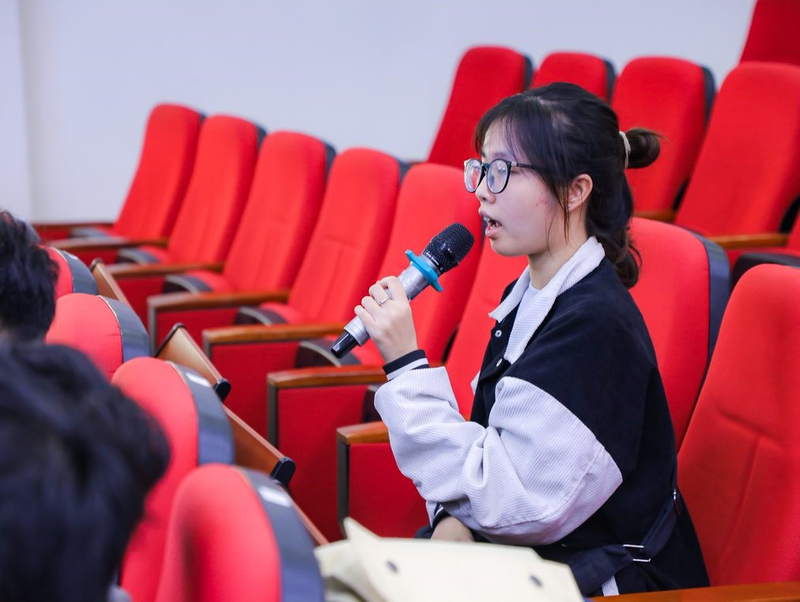 Trong “tiết học đặc biệt” này, diễn giả đã có những hướng dẫn tỉ mỉ cho các bạn sinh viên về cách phát âm và cách phân biệt một số âm đuôi thường gặp: C - K - QUE; S - T - CH - SH; D - P - B; F - VE - TH,... Đồng thời, ông Karson cũng giúp các bạn khám phá sâu hơn những nguyên tắc của nguyên âm và phụ âm, một số lỗi thường gặp mà ông đã quan sát được ở sinh viên trong quá trình giảng dạy. Ông chia sẻ rằng đa số những người bắt đầu học tiếng Anh sẽ có xu hướng dè dặt, ngại sử dụng nhiều cơ lưỡi và cơ miệng, từ đó dẫn đến việc đọc sai những từ dễ nhầm lẫn. Theo ông, muốn phát âm thật chuẩn cần rất nhiều thời gian và sự luyện tập.