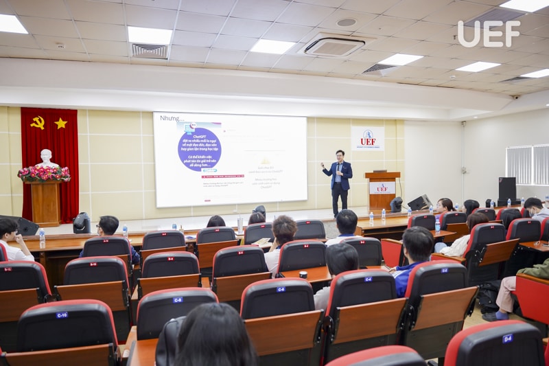 Giữa bối cảnh trí tuệ nhân tạo (AI) đang "làm mưa làm gió" và trở thành một phần không thể thiếu trong nhiều lĩnh vực, đặc biệt là nghiên cứu khoa học, UEF cũng đã nhanh chóng nắm bắt xu hướng và triển khai nhiều hoạt động cho sinh viên có cơ hội tiếp xúc, ứng dụng công cụ này một cách hiệu quả.