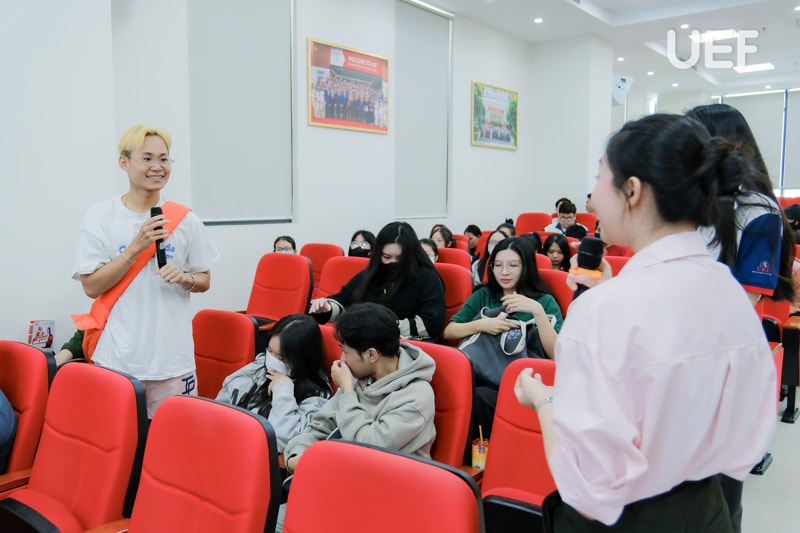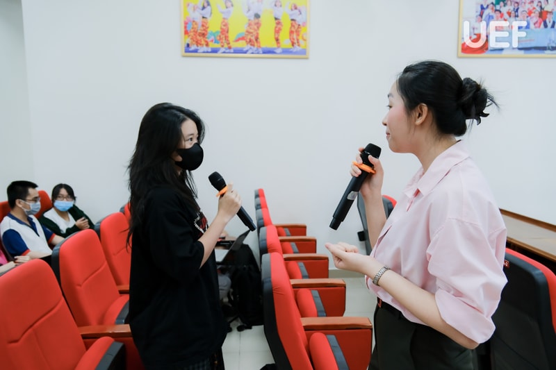 Đặc biệt, để sinh viên dễ hình dung hơn, diễn giả đã đưa ra nhiều ví dụ cụ thể và khuyến khích các bạn thực hành trực tiếp tại buổi workshop. Điều này không chỉ giúp làm rõ những vấn đề cô đã chia sẻ mà còn tạo cơ hội để UEFers tập làm quen với các tình huống phỏng vấn thực tế.