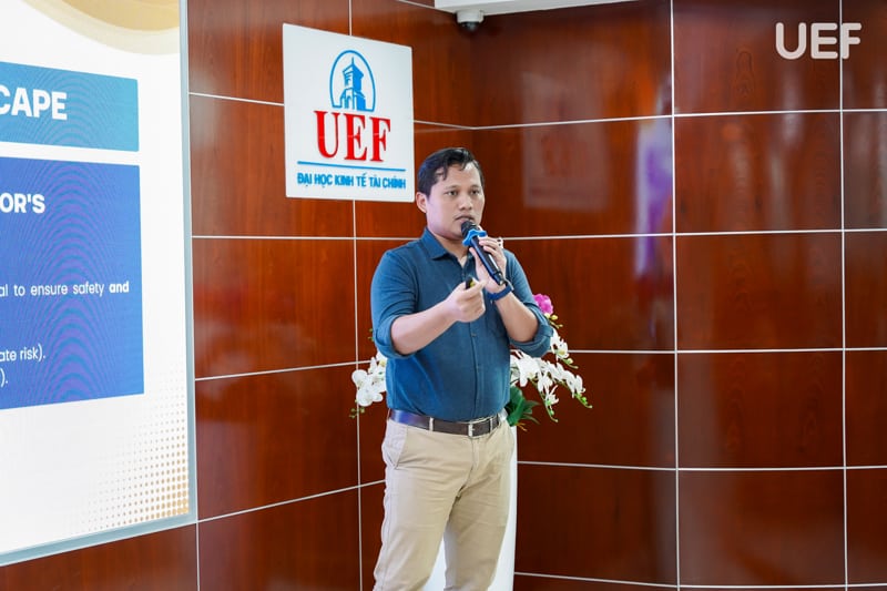Bên cạnh lý thuyết, diễn giả hướng dẫn sinh viên đọc và phân tích biểu đồ, xác định mối tương quan dữ liệu, hiểu rõ các rủi ro giá cả, bối cảnh lạm phát và sử dụng các công cụ đo lường hiệu suất như tỷ lệ Sharpe (thước đo mức lợi nhuận). Qua những hướng dẫn này, UEFers được từng bước rèn kỹ năng đánh giá chất lượng lợi nhuận và biết cách xây dựng danh mục phù hợp với mục tiêu cũng như mức độ chấp nhận rủi ro của bản thân. Ở phần cuối chương trình, diễn giả cũng nhấn mạnh những nguyên tắc cốt lõi dành cho người mới bắt đầu, giúp sinh viên củng cố thêm sự tự tin trước khi bước vào thị trường.