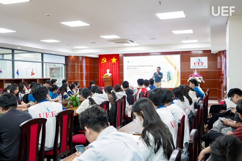 Nhằm giúp sinh viên củng cố kiến thức chuyên môn và tiếp cận góc nhìn thực tiễn về các chiến lược đầu tư vàng, chiều ngày 10/12, Viện Quốc tế phối hợp với Khoa Tài chính - Kế toán đã tổ chức buổi workshop với chủ đề: “Portfolio Diversification with Gold: Analyzing Its Performance Against Interest Bearing Assets”.