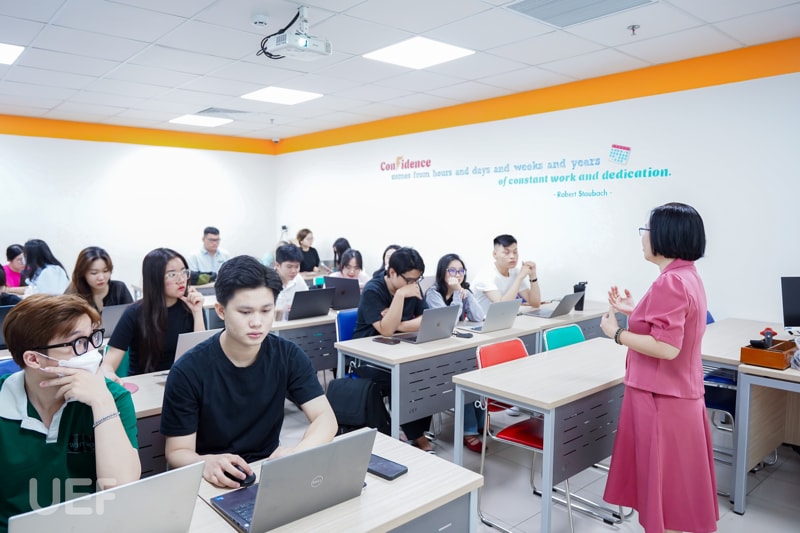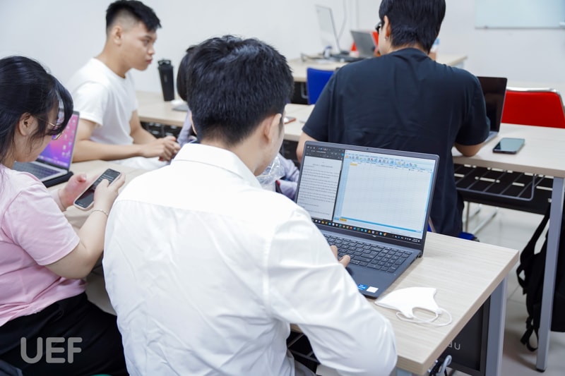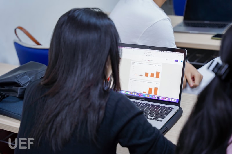 Bước vào nội dung chính, cô Bích Vân cùng sinh viên bắt đầu thực hành sử dụng công cụ SPSS để phân tích các dữ liệu có sẵn. Bằng tâm huyết và kỹ năng vốn có, sinh viên UEF đã có những trải nghiệm quý báu về các kiến thức chuyên môn thuộc về lĩnh vực nghiên cứu thông qua việc phân tích thực tế các dữ liệu thu thập được. Cô hướng dẫn sinh viên từng bước thao tác trên phần mềm SPSS, từ việc nhập dữ liệu, lựa chọn phương pháp phân tích phù hợp đến việc giải thích kết quả và đưa ra kết luận. Sinh viên được khuyến khích đặt câu hỏi, thảo luận và chia sẻ ý kiến của mình trong suốt quá trình thực hành.