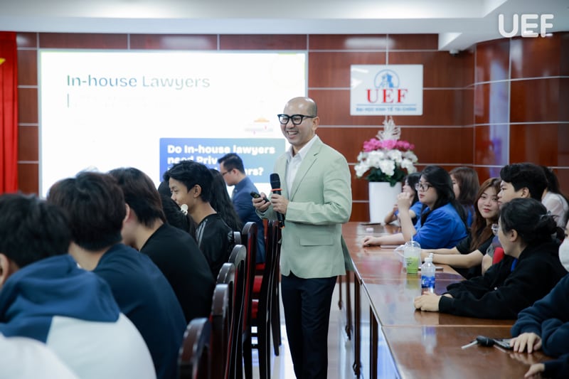 Xuyên suốt chương trình, UEFers đã thể hiện tinh thần học hỏi nghiêm túc khi luôn chủ động đặt câu hỏi và trao đổi bằng tiếng Anh với diễn giả, qua đó khám phá sâu thêm nhiều khía cạnh pháp lý gắn với thực tiễn nghề nghiệp.