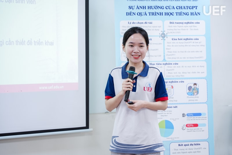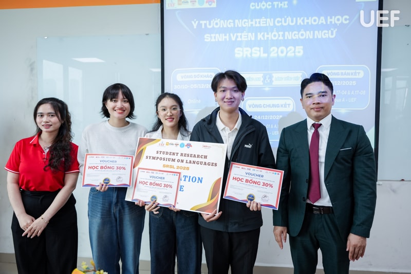 Hơn cả một sân chơi học thuật, SRSL 2025 được xem như không gian để sinh viên thể hiện tư duy nghiên cứu sắc bén, vận dụng kiến thức chuyên ngành, phương pháp khoa học và góc nhìn cá nhân để tiếp cận những vấn đề thời sự trong lĩnh vực ngôn ngữ, giáo dục và công nghệ. Cuộc thi qua đó góp phần nuôi dưỡng tinh thần học thuật, khơi dậy niềm đam mê nghiên cứu và từng bước hình thành bản lĩnh khoa học cho sinh viên khối ngành Ngôn ngữ tại UEF.
