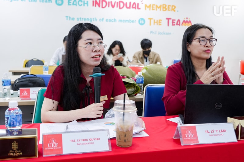 Hội đồng giám khảo của bảng thi này có TS. Bùi Thị Mỹ Linh - Trưởng ngành Ngôn ngữ Hàn Quốc UEF; TS. Lý Y Lâm -Trường Đại học Tôn Đức Thắng; ThS. Lý Như Quỳnh - Trưởng ngành Ngôn ngữ Nhật UEF, đảm bảo tính chuyên môn và chiều sâu trong đánh giá các công trình nghiên cứu.
