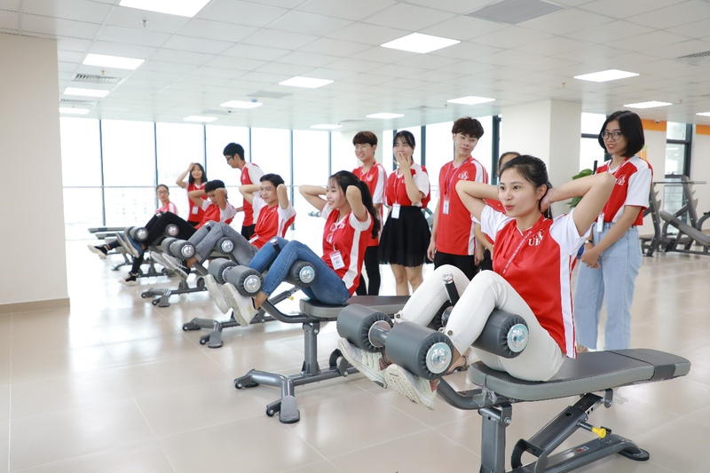 Dưới sự chia sẻ và hướng dẫn tận tình của cô Nguyễn Thị Bích Ly – Trưởng bộ môn Giáo dục thể chất, đồng thời là gương mặt vận động viên thể hình sáng giá của quốc gia và khu vực, các bạn tân sinh viên đã được khám phá không gian luyện tập thể dục thể thao – phòng Gym "xịn sò" của Nhà UEF. Các bạn tỏ ra thích thú với không gian tập luyện trẻ trung, hiện đại, được trang bị đầy đủ các máy tập: máy chạy bộ, nâng cơ đùi, xe đạp chạy bộ, máy tập cơ vai,… đáp ứng thể trạng và mục đích tập luyện của từng sinh viên.