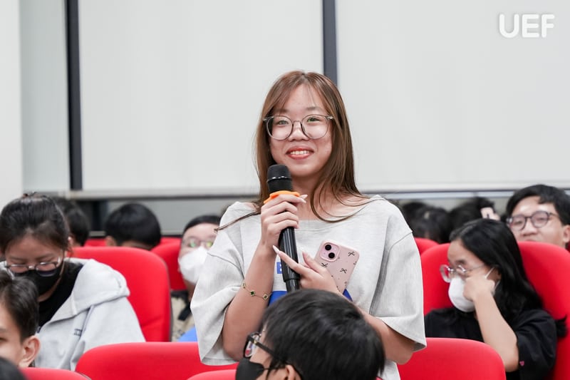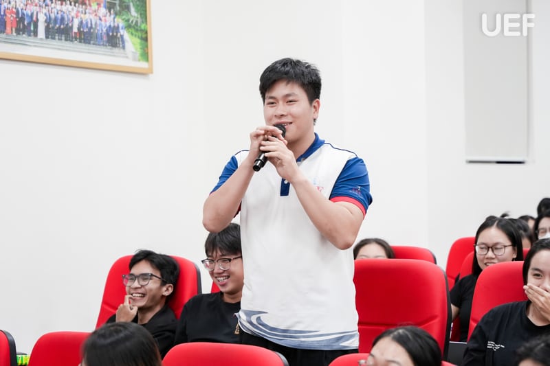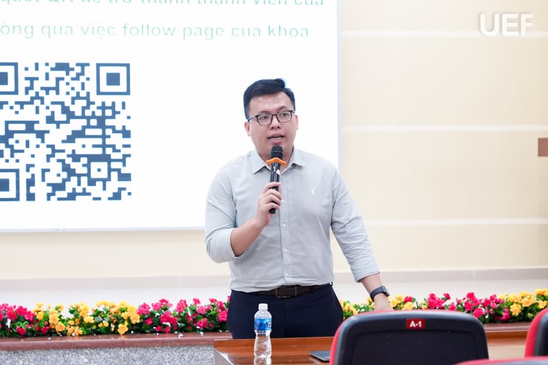 Trong phần định hướng học tập, ThS. Nguyễn Thanh Lâm đã hệ thống kỹ càng các quy định về điểm số môn học, tiêu chí đánh giá học lực, điều kiện duy trì học bổng và các chuẩn đầu ra, giúp sinh viên nắm rõ các yêu cầu học vụ và xây dựng lộ trình học tập phù hợp với tiến trình đào tạo. Thầy cũng phân tích những sai sót sinh viên thường gặp, đồng thời đưa ra đề xuất giải pháp giúp UEFers chủ động điều chỉnh phương pháp học tập, từ đó đảm bảo mục tiêu tốt nghiệp đúng thời hạn.