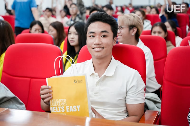 Tiếp nối chương trình, chị Đoàn Hải Ngọc đã chia sẻ vai trò và nhấn mạnh tầm quan trọng của chứng chỉ tiếng Anh đối với chuẩn đầu ra đại học cũng như yêu cầu trong công việc. Không khí trở nên sôi nổi với phần minigame và các phần quà hấp dẫn từ trung tâm, góp phần khích lệ và tạo động lực cho sinh viên trên hành trình học tập. Qua đó, các bạn sinh viên đã có cái nhìn tổng quan về chứng chỉ ngoại ngữ, từ đó xây dựng lộ trình học tập rõ ràng, tiến gần hơn đến mục tiêu tốt nghiệp đúng tiến độ.
