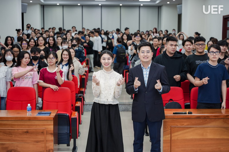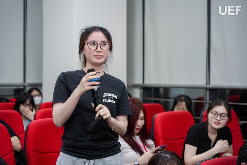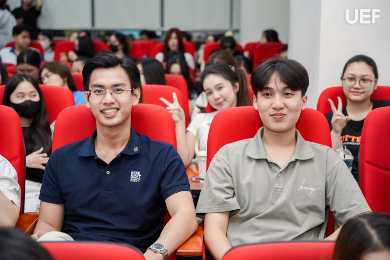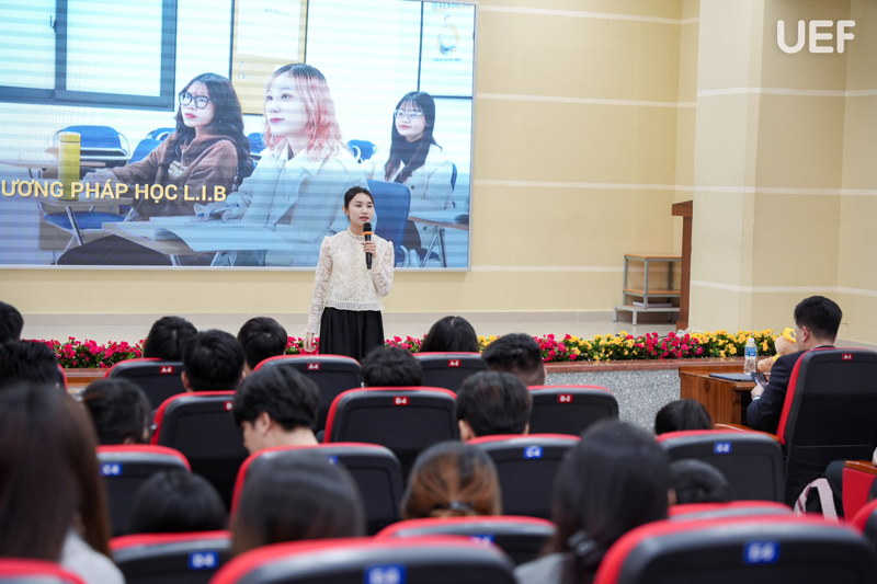 Đại diện IELTS Mentor cũng mang đến góc nhìn thiết thực về việc học ngoại ngữ để đáp ứng chuẩn đầu ra. Bên cạnh chia sẻ về lộ trình và phương pháp học hiệu quả, chương trình cũng giới thiệu những ưu đãi dành riêng cho sinh viên UEF về học phí, chương trình đào tạo và dịch vụ hỗ trợ học tập. Đây là nguồn động lực để sinh viên thêm tự tin chinh phục các mức điểm cần thiết, đảm bảo đúng tiến độ tốt nghiệp.