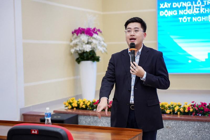 Bên cạnh đó, thầy nhấn mạnh vai trò của nghiên cứu khoa học như một công cụ rèn tư duy, mở rộng kiến thức và tạo lợi thế trong hồ sơ nghề nghiệp. Về phương diện hoạt động ngoại khóa, ThS. Nguyễn Nam Trung phân tích ý nghĩa của việc tích lũy điểm rèn luyện, các nhóm hoạt động giúp phát triển kỹ năng mềm, cùng những mốc thời gian quan trọng của học kỳ 1B liên quan đến thực tập, xây dựng CV - portfolio và kỹ năng ứng tuyển.