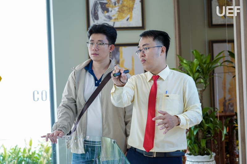 Ngoài ra, nhằm giúp sinh viên hiểu rõ hơn về không gian nhà ở thực tế, các bạn tiếp tục tham quan khu nhà mẫu Green Sapphire. Tại đây, UEFers trực tiếp quan sát và tìm hiểu nhiều loại hình căn hộ với các mức giá khác nhau. Những trải nghiệm thực tế này giúp sinh viên được tiếp cận rõ hơn với hệ thống cơ sở hạ tầng, nắm bắt các quy trình bàn giao nhà, hiểu rõ nhu cầu của khách hàng cũng như các yếu tố ảnh hưởng đến việc định giá căn hộ, từ đó từng bước làm quen với môi trường làm việc thực tiễn trong lĩnh vực bất động sản.