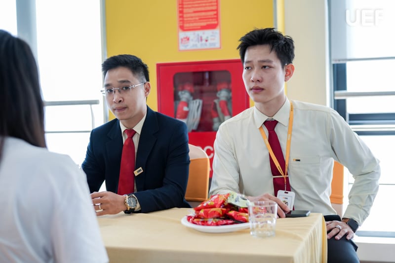 Tiếp nối chương trình tham quan, sinh viên được tham gia hoạt động mô phỏng tư vấn khách hàng, phỏng vấn và định hướng nghề nghiệp trực tiếp tại doanh nghiệp. Trong không gian làm việc thực tế, các bạn có cơ hội đối diện với những tình huống thường gặp trong nghề môi giới bất động sản, từ đó hiểu rõ hơn về tiêu chí và yêu cầu của nhà tuyển dụng. Từ trải nghiệm này, sinh viên có cơ hội rèn luyện kỹ năng giao tiếp, tích lũy kinh nghiệm thực tế và từng bước xây dựng nền tảng vững chắc cho sự nghiệp trong tương lai.