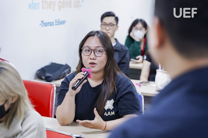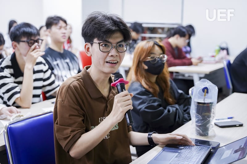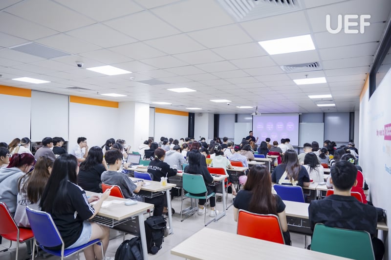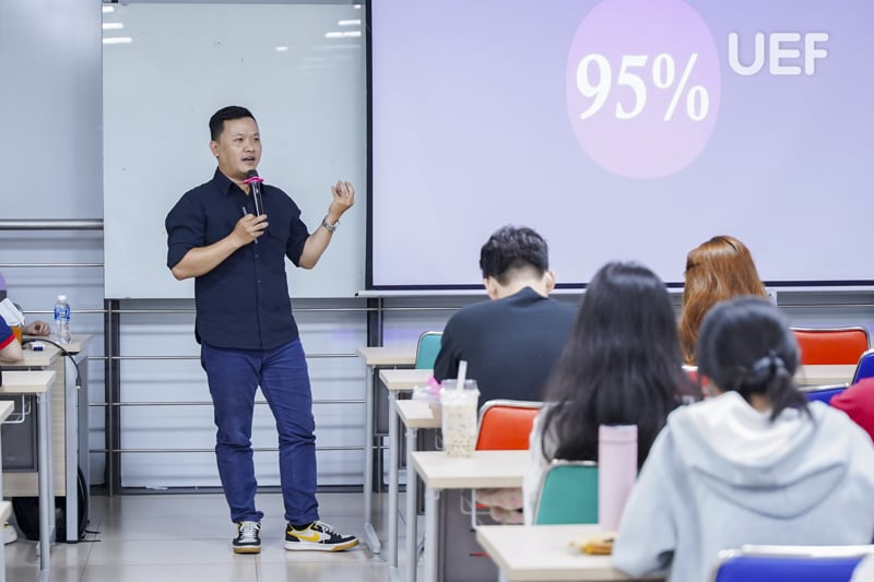 Bên cạnh chia sẻ kiến thức lý thuyết, diễn giả đã sử dụng nhiều hình ảnh minh họa sinh động, những đoạn video ngắn cùng các tình huống thực tế giúp UEFers dễ dàng nắm bắt nội dung và ghi nhớ lâu hơn. Anh liên tục tương tác với sinh viên thông qua các câu hỏi, trò chơi nhỏ và bài tập thực hành, tạo nên không khí học tập đầy sôi động và hào hứng cho chương trình.