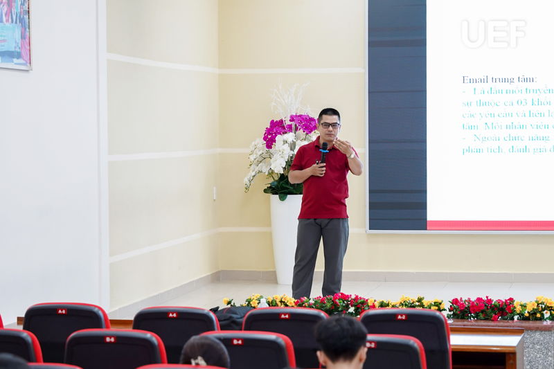 Diễn giả mở đầu bằng những tình huống thực tế tại các doanh nghiệp vừa và nhỏ (SMEs), chỉ ra những khó khăn mà các doanh nghiệp thường gặp phải như: vấn đề dòng tiền, quản trị nhân sự, sự thay đổi liên tục của thị trường và cách doanh nghiệp có thể thích ứng. Một trong những giải pháp quan trọng được ông chia sẻ là mô hình Trung tâm xử lý tập trung (CPC - Citybase Processing Center) và Email điều hành trung tâm, giúp doanh nghiệp tối ưu hóa quy trình vận hành, giảm thiểu sai sót và nâng cao hiệu suất quản lý.