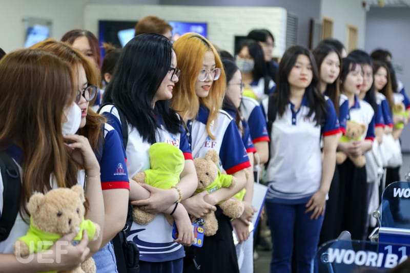 Không chỉ học hỏi kinh nghiệm, sinh viên Nhà UEF còn mang về những chú gấu bông dễ thương sau phần hỏi đáp cùng doanh nghiệp. Sau đó, các bạn được hướng dẫn tham quan văn phòng, khám phá các vị trí làm việc tại Wooribank.
