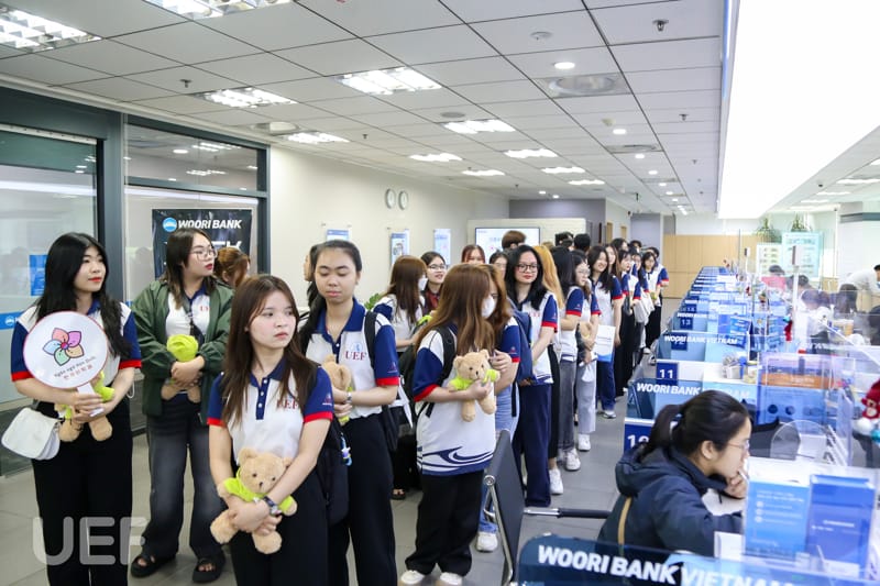 Tham quan doanh nghiệp là hoạt động trải nghiệm thực tế không thể thiếu trong chương trình học tập của sinh viên UEF. Với mong muốn giúp các bạn tìm hiểu về văn hóa công ty, tác phong làm việc, học hỏi kinh nghiệm từ nhà tuyển dụng quốc tế, sáng ngày 7/3, Khoa Ngôn ngữ và Văn hóa quốc tế UEF đã tổ chức chuyến tham quan tại Ngân hàng Wooribank, thuộc chương trình Company Tour đợt 3 cho các UEFers ngành Ngôn ngữ Hàn Quốc.