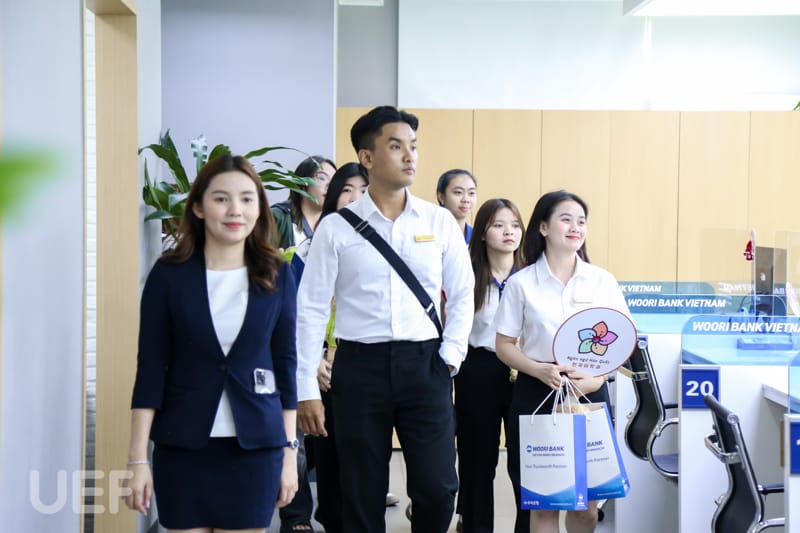 Sinh viên Nhà UEF được hướng dẫn tham quan văn phòng làm việc tại Wooribank