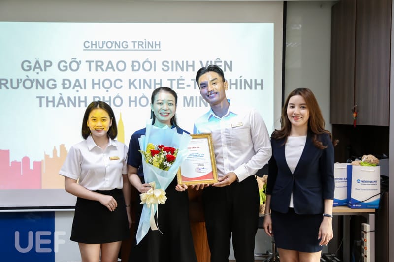 Là một trong bốn ngân hàng nội địa lớn nhất tại Hàn Quốc có trụ sở tại Việt Nam, Wooribank mang đến cho sinh viên những góc nhìn tổng quan nhất về doanh nghiệp quốc tế. Ở đây, bên cạnh việc khám phá về văn hóa làm việc, chính sách phúc lợi đầy hấp dẫn như thưởng, phụ cấp tiếng Hàn,... của Wooribank, UEFers còn được “gỡ rối” những thắc mắc xoay quanh những khó khăn, thử thách, việc bất đồng ngôn ngữ, khác biệt văn hoá khi làm việc tại công ty.