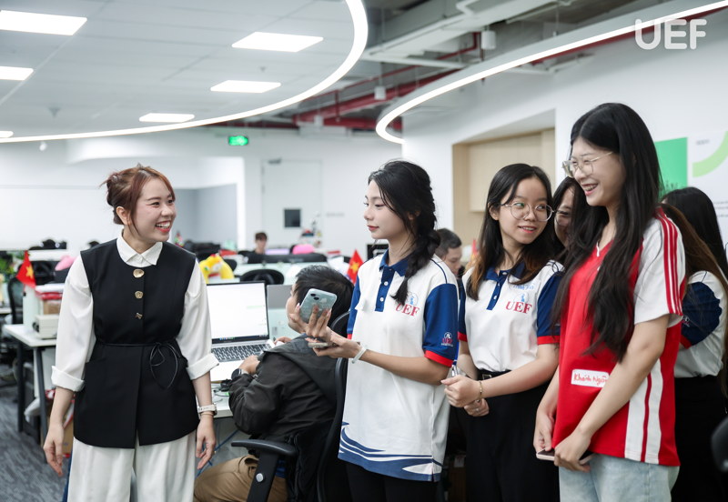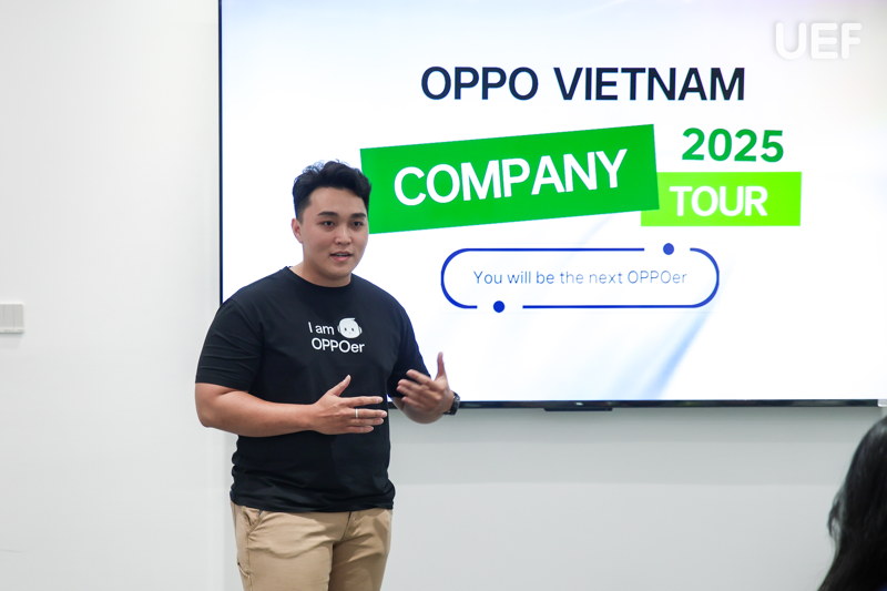 Sinh viên Nhà UEF còn được tham quan văn phòng làm việc của OPPO Việt Nam. Tại đây, các bạn quan sát hoạt động của từng phòng ban, cảm nhận nhịp làm việc chuyên nghiệp, tinh thần gắn kết. Với sinh viên năm ba, năm cuối, đây là trải nghiệm thổi bùng động lực học tập, đồng thời giúp các bạn hiểu rõ yêu cầu thực tế để chuẩn bị hành trang bước vào doanh nghiệp sau khi ra trường.