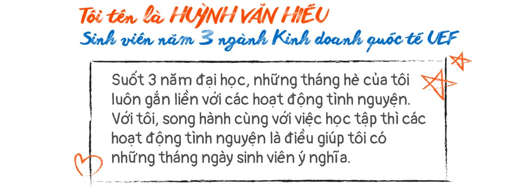 Sau khi kết thúc năm học đầu tiên của thời sinh viên, tôi đã đăng kí tham gia chiến dịch tình nguyện Mùa hè xanh 2019 để trải nghiệm vì bản thân chưa bao giờ tham gia bất cứ hoạt động gì trong quá trình học tập.