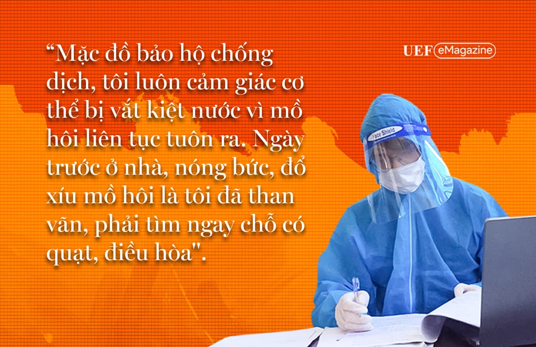 Là một sinh viên khối ngành kinh tế, lần đầu tiên tham gia vào các công tác y tế quả thật là điều không hề đơn giản. Tôi đã gặp rất nhiều khó khăn trong công tác phòng chống dịch bệnh vì đây là những công việc mình chưa từng làm, chưa đủ chuyên môn. Trong quá trình tác nghiệp, tôi và các đồng đội luôn phải đảm bảo đồ bảo hộ. Đến 7 - 8 tiếng đồng hồ mặc đồ bảo hộ làm việc cũng là ngần ấy thời gian không uống nước, dù khát khô cổ họng để tránh lây nhiễm. Tuy nhiên được sự giúp đỡ của mọi người, hơn hết là tinh thần vì một Việt Nam khỏe mạnh, không chỉ tôi mà tất cả chiến sĩ tình nguyện khác đều hoàn thành tốt nhiệm vụ.