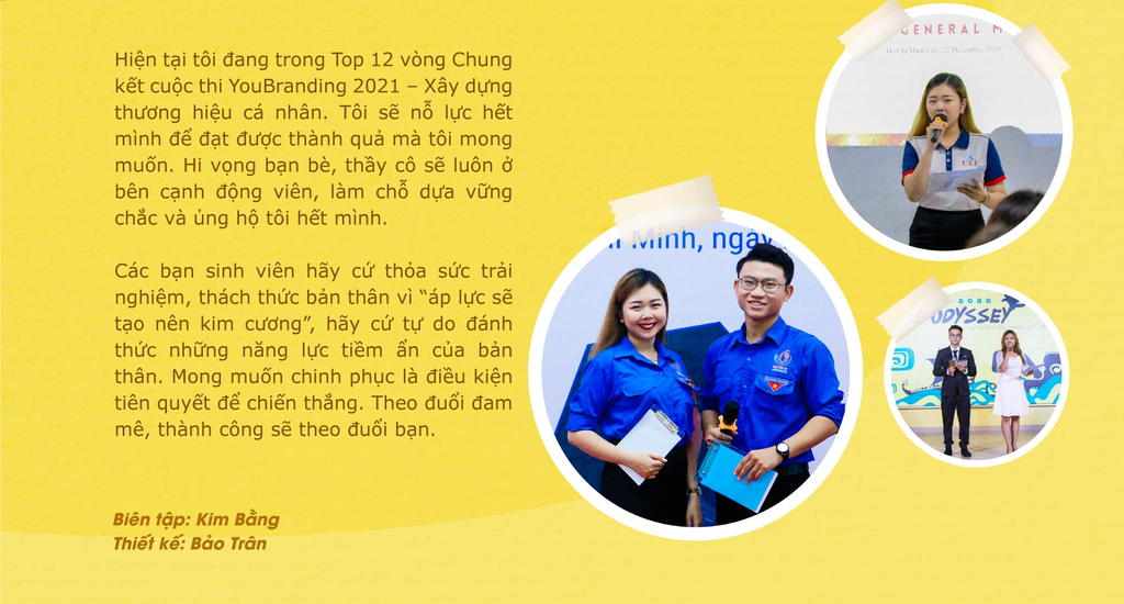 Hiện tôi là Lớp trưởng lớp 19D1MK03. Trách nhiệm của người đứng đầu, quan tâm, chia sẻ và đảm bảo quyền lợi cho tất cả thành viên trong lớp, song song đó việc đi làm, đi diễn đã hình thành tính cách tôi có phần “già dặn” hơn so với các bạn đồng trang lứa. Vì thế, bản thân luôn tự nhủ phải mạnh mẽ, bản lĩnh hơn nữa để hoàn thành những mục tiêu đề ra.
