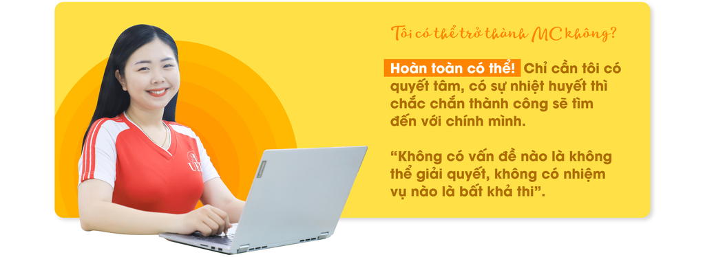 Thời còn học cấp 3, tôi đã được những anh chị trong nghề khuyên nên học hỏi và phát triển mảng MC vì tôi hội tụ đủ 5 yếu tố: Giọng nói, phát âm, ngôn từ, tư duy và phong thái của một người dẫn chương trình. Nhưng giai đoạn đó tôi chỉ nghe và biết vậy, chưa có ý định gì với công việc này. Vì với tôi, MC là công việc đòi hỏi rất nhiều tố chất và kĩ năng.