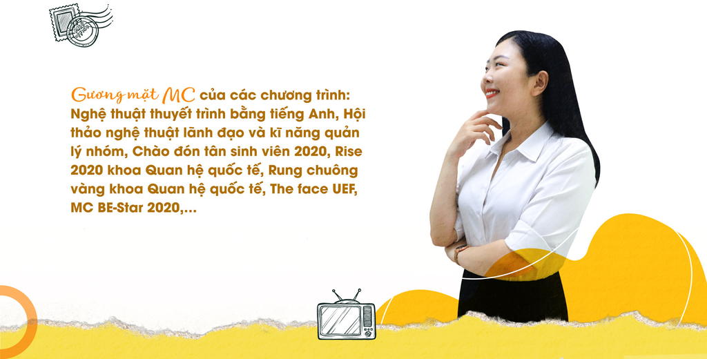 Dấu ấn đầu tiên với nghề MC của tôi là cuộc thi Mic Vàng UEF 2019, dù chỉ dừng lại ở Bán kết nhưng tôi đã học được rất nhiều điều mới lạ, thú vị mà chưa bao giờ tôi nghĩ mình có thể biết. Nó là động lực cho tôi ở cuộc thi: Én Vàng học đường 2020, Siêu thủ lĩnh 2020, Người dẫn chương trình Phát thanh – Truyền hình 2021, các cuộc thi ở UEF như S-Debate 2020, YouBranding 2021.