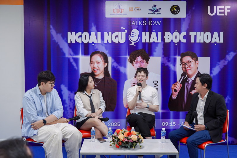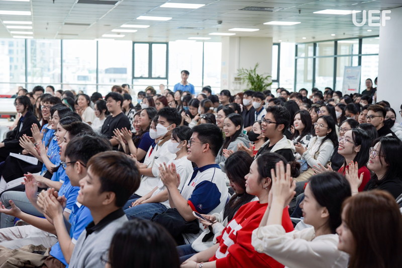 Buổi talkshow khép lại với thật nhiều cảm hứng và tinh thần tích cực. Sinh viên UEF được tiếp thêm động lực chinh phục ngoại ngữ, có thêm góc nhìn mới về cách ngôn ngữ vận hành trong giao tiếp và đời sống. Đây sẽ là hành trang quan trọng giúp các bạn tự tin bước vào môi trường học tập, làm việc toàn cầu trong tương lai.
