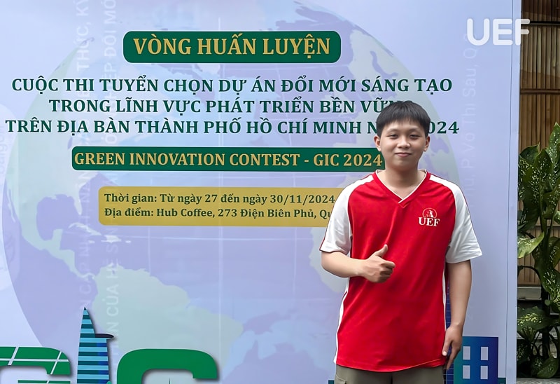 Đối với bản thân em, 2024 là một năm có rất nhiều điều đặc biệt như là học thêm những điều hay, gặp những người bạn mới, làm những công việc trước đây em chưa từng làm. Đặc biệt hơn, em được UEF và các thầy cô yêu quý tạo điều kiện để tham dự cuộc thi Green Innovation Contest 2024 và may mắn lọt vào top 40 dự án đổi mới sáng tạo xuất sắc.