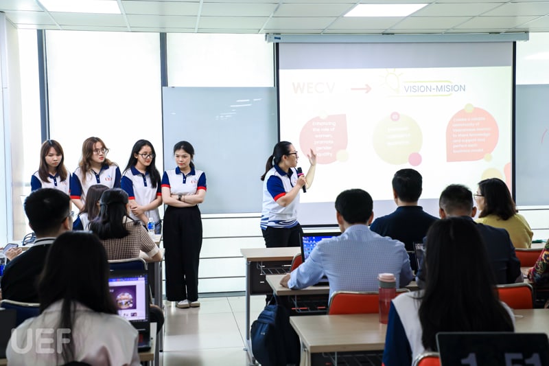 Chiều 27/3, Khoa Quản trị kinh doanh và Trung tâm Kết nối cộng đồng (KNCĐ) UEF đã tổ chức buổi tổng kết môn học Quản trị thương hiệu. Trải qua hơn một tháng nghiên cứu, sinh viên tham gia trình bày về bộ nhận diện thương hiệu và chiến lược truyền thông cho các dự án cộng động đã và đang phát triển. Cụ thể là dự án WECV và Green Move.