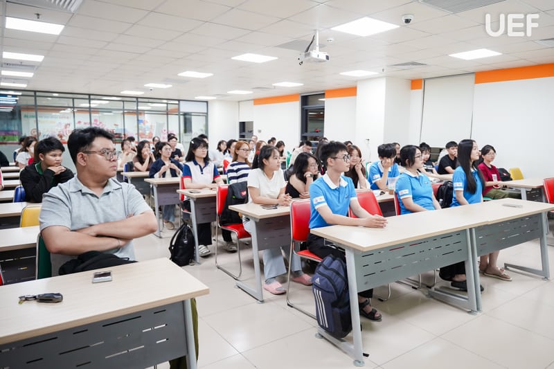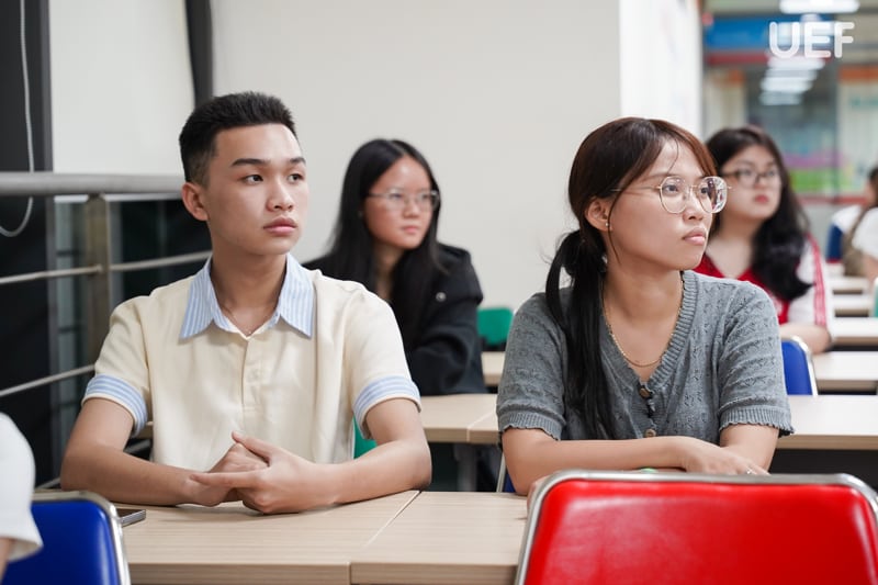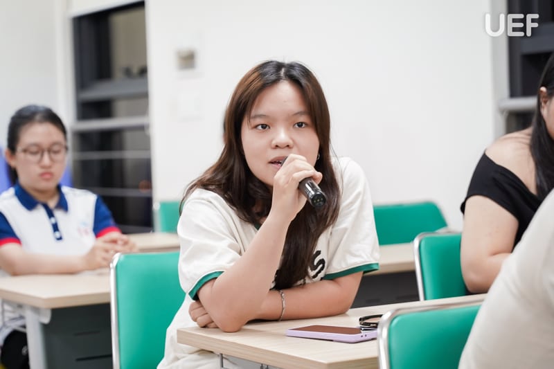 Bên cạnh việc chăm chú lắng nghe, sinh viên tích cực đặt câu hỏi và tham gia thảo luận với diễn giả. Qua những trải nghiệm này, đã giúp UEFers hiểu rõ về việc giao tiếp hiệu quả trước đám đông không chỉ nằm ở lời nói mạch lạc mà còn phụ thuộc vào thái độ, tác phong và cách thể hiện sự tôn trọng với người đối diện, góp phần hoàn thiện kỹ năng giao tiếp toàn diện.