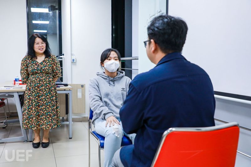 Sinh viên thực hành kỹ thuật phỏng vấn chuyên sâu sau khi lắng nghe chia sẻ của diễn giả