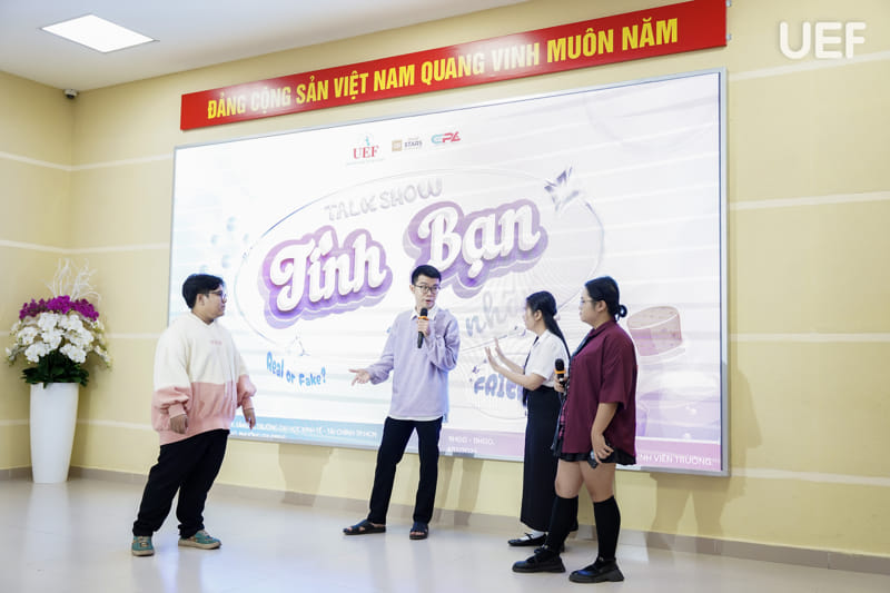 Buổi talkshow đã khép lại trong không khí vui vẻ và đầy cảm xúc, để lại nhiều bài học giá trị cho sinh viên UEF. Không chỉ được giải trí với những câu chuyện hài hước đặc trưng của Sài Gòn Tếu, các bạn còn được trang bị những kiến thức thực tế về cách xây dựng các mối quan hệ lành mạnh. Đây là một trong những kỹ năng quan trọng trong thời gian học đại học và cho cả hành trình phát triển sự nghiệp sau này.