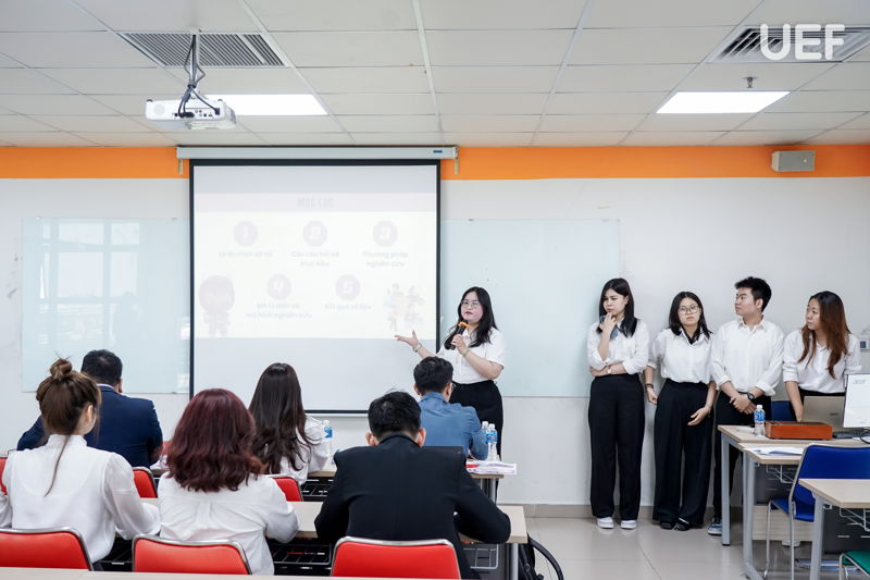Mỗi nhóm có 15 - 30 phút để trình bày nội dung nghiên cứu và phản biện, làm rõ các yếu tố như bối cảnh, lý do chọn đề tài, mục tiêu - phương pháp nghiên cứu, kết quả phân tích và các hàm ý quản trị. Qua đó, sinh viên vừa rèn luyện kỹ năng trình bày chuyên nghiệp, cũng vừa học cách bảo vệ quan điểm và xử lý phản biện từ Hội đồng.