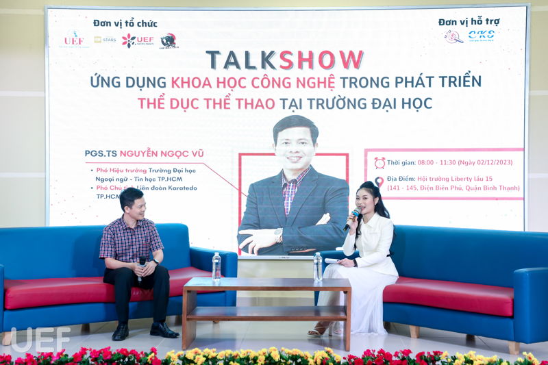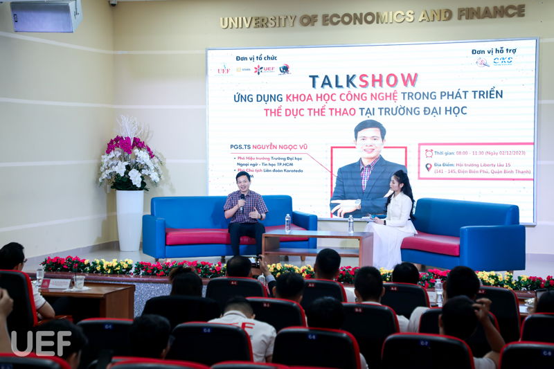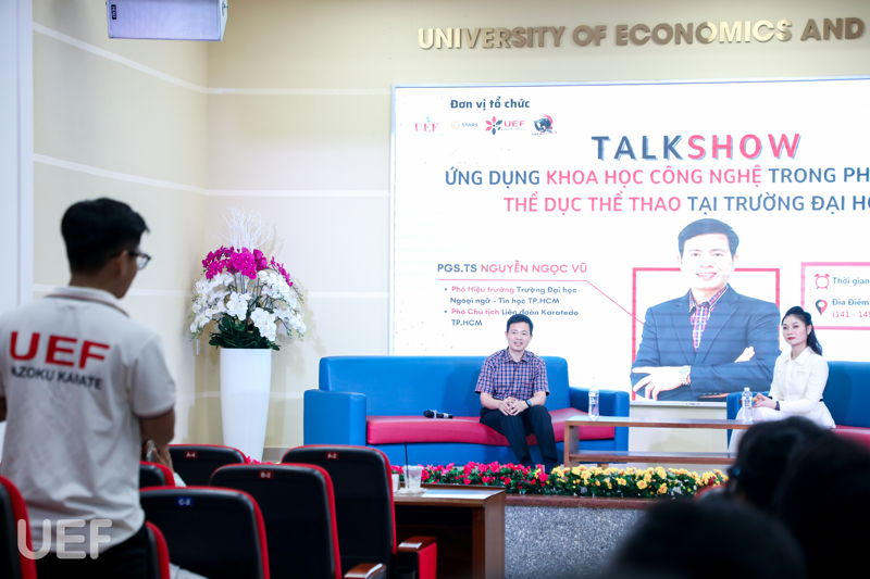 Bên cạnh các sân chơi học thuật, văn hóa văn nghệ, UEF cũng rất chú trọng tổ chức các hoạt động thể dục thể thao, rèn luyện sức khỏe cho sinh viên. Để giúp các bạn tiếp cận và cập nhật những xu hướng mới về khoa học công nghệ áp dụng trong lĩnh vực này, sáng 2/12, câu lạc bộ (CLB) Kazoku Karate và CLB MMA Nhà UEF đã tổ chức talkshow "Ứng dụng khoa học công nghệ trong phát triển thể dục thể thao tại trường đại học".
