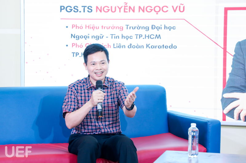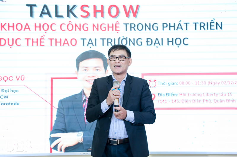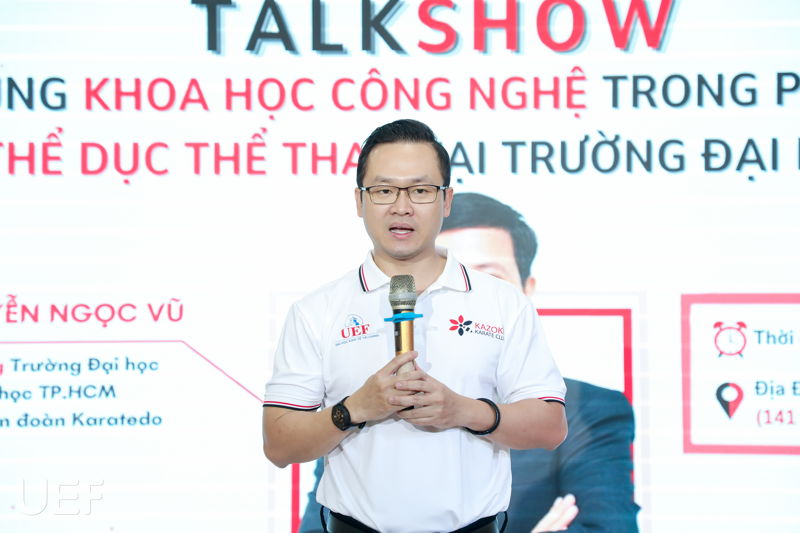Talkshow có sự đồng hành của PGS.TS. Nguyễn Ngọc Vũ - Phó Hiệu trưởng trường Đại học Tin học - Ngoại ngữ TP.HCM, Phó Chủ tịch Liên đoàn Karatedo TP.HCM. Với vốn kinh nghiệm tập huấn từ hơn 25 quốc gia, diễn giả đã mang đến những câu chuyện thú vị của người học võ, đồng thời cũng làm rõ được tính ứng dụng của công nghệ số trong phát triển hoạt động võ thuật nói riêng và lĩnh vực thể dục thể thao nói chung.