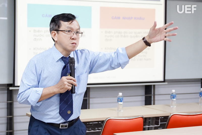 Sinh viên được tiếp cận cách phân biệt các biện pháp quản lý của Nhà nước, bao gồm hàng rào thuế quan - phi thuế quan, hạn ngạch, chỉ định cửa khẩu, cấp phép xuất nhập khẩu, áp dụng tiêu chuẩn kỹ thuật, kiểm dịch,... Diễn giả còn phân tích nhiều tình huống thực tế về hàng hóa thuộc danh mục cấm/hạn chế xuất, nhập khẩu, hàng phải kiểm tra chuyên ngành, cũng như cách doanh nghiệp xử lý các vướng mắc trong khai báo để tránh rủi ro bị xử phạt.