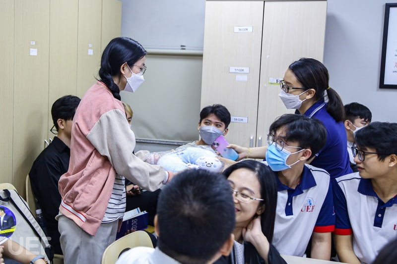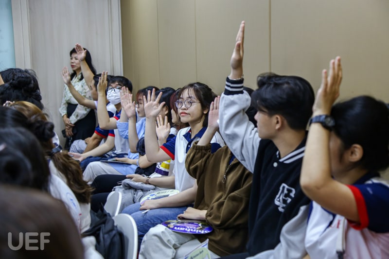Sinh viên UEF được học hỏi những kiến thức cơ bản về marketing trong lĩnh vực ngân hàng. Những thắc mắc và trăn trở của các bạn liên tục đặt ra và được phía ngân hàng đánh giá cao về tư duy câu hỏi. Sau mỗi lượt tương tác, các bạn đều nhận được những phần quà nhỏ từ đơn vị.
