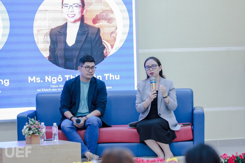Với kinh nghiệm thực chiến nhiều năm trong lĩnh vực nhà hàng - khách sạn, chị Xuân Thu đã làm rõ một ngày làm việc của chị nói riêng và cả bộ phận PR nói chung. Sinh viên UEF qua đó cũng có cái nhìn tổng quan và rõ ràng hơn về ngành mà các bạn đang theo học.